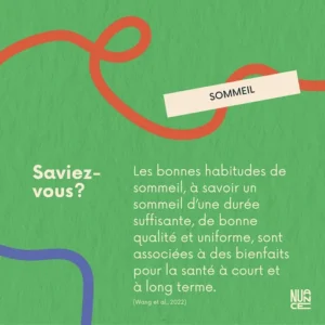 Le sommeil : bien plus que de l’énergie. Le sommeil soutient la régénération du corps, la mémoire, les apprentissages et la régulation des émotions, chez les enfants comme chez les adultes. Une des premières causes à questionner. Excellent levier de prévention et d’intervention. Le sommeil est un outil clé de prévention en santé mentale et de bien-être, en interaction avec l’alimentation et l’activité physique. | ≈ 31 – 37 minutes |