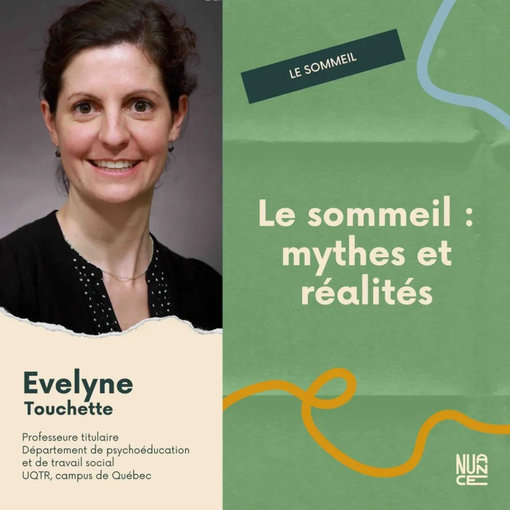 À travers ce balado, vous êtes invité(e)s à déconstruire des mythes sur le sommeil avec Évelyne Touchette : certains qu’elle croyait elle-même avant de devenir chercheuse, et d’autres qui persistent encore aujourd’hui dans nos sociétés.